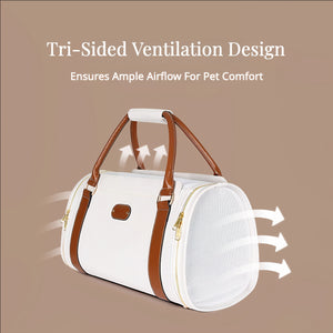 Discover LuxPet Travel Bags – the ultimate luxury pet carrier with water-resistant leather, tri-sided ventilation, and an integrated safety leash. Ensure your pet’s comfort and security on every journey. The product dimensions are 45(L) x 26(W) x 27(H) cm & Weight is 2 kg.